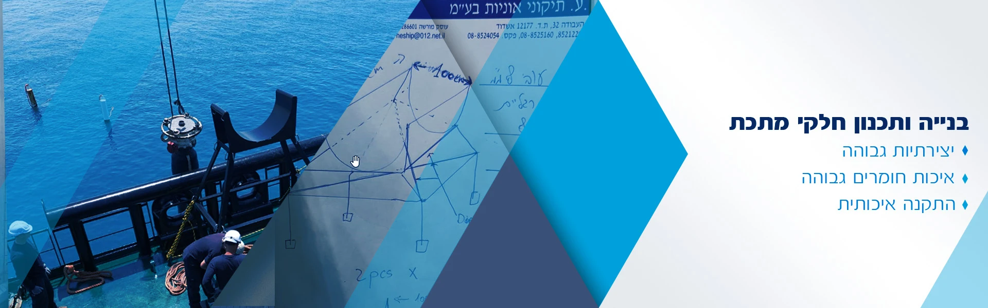 החברה משמשת כמרכז וותיק ומוביל למעלה מ-30 שנה במתן שירותי תיקונים ואחזקה לאוניות ולמבנים.אנו מבצעים את כל סוגי העבודות הנדרשות, לרבות עבודות חשמל, חריטה, כרסום, בניית חלקי מתכת בהתאמה אישית, מסגרות קלה וכבדה, עבודות נגרות והידראוליקה, בים וביבשה.